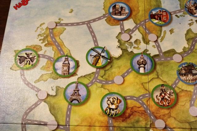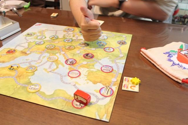 なんてことは無いシステムのゲームなんだけど、単純に楽しい。 子供ゲームらしく、目的地が絵になっている点やゲーム内容とシステムが がっちりマッチしている点など、とてもとっつきやすくて分かりやすい。 大人同士でも目的地の絵が話題になったり、そういうのも楽しい。 他のプレイヤーの手番でも「あーそっち行くな!」とか「よしよし、こっち来い」とか 読み合いを楽しむというよりは、単純に気軽に楽しむ感じだ。 ゲームのヤマ場は、やっぱり5つあるスターのチップ。 引いた人が有利とはいえ、全員にチャンスがあるので 盛り上がりやすいのは良いところ。 なんでか、こういうきれいな地図というのは人を引き付ける 魔力みたいなものがあるんだよね。 ここが素晴らしい、と言うほどのものは無いけれど でもなかなか良く出来てると思う。 それと、この会社のコンポーネントの出来はいつも素晴らしいよね。ツイート