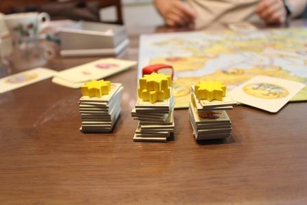 「着きました!」と言って目的地カードを公開します。 で、それまで場に溜まったチップをもらいます。
