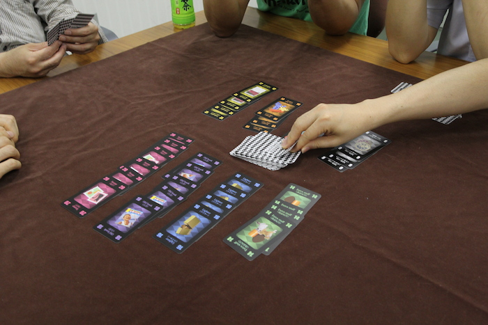 その後、プレイ人数によって差がありますが5人プレイの場合は、山札から3枚めくってオープンにします。 手札は1枚ずつ(※これもプレイ人数によって異なります)