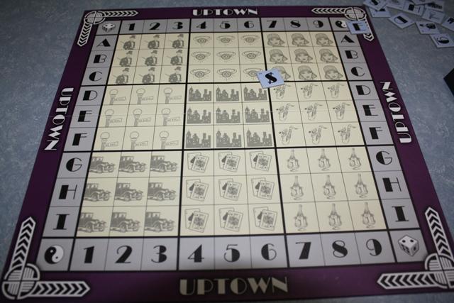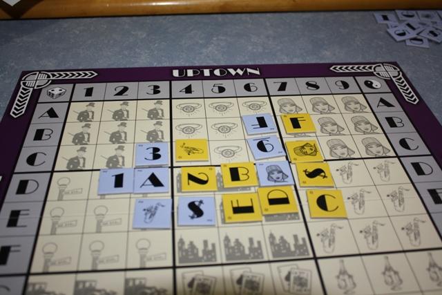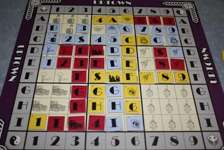 ボード全景、なんだかなんかの雑誌で見たようなパズルみたいなデザイン。このボードに、こんなタイルを置いていく。