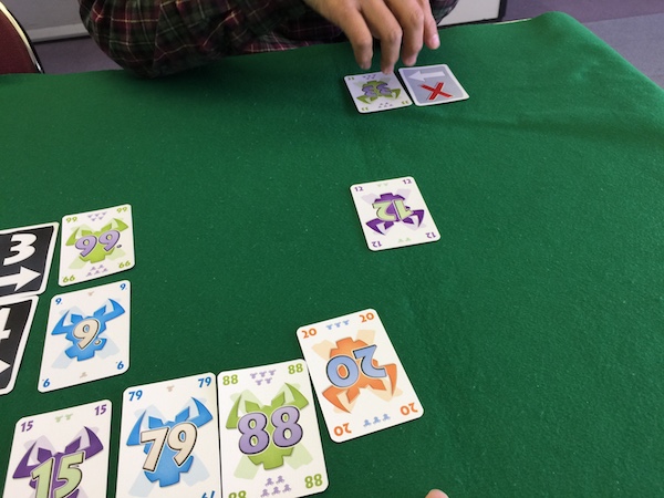 カード列の右端のカードより大きい、かつ最も数字が近いところに置きます。 この辺はニムトと全く同じ。