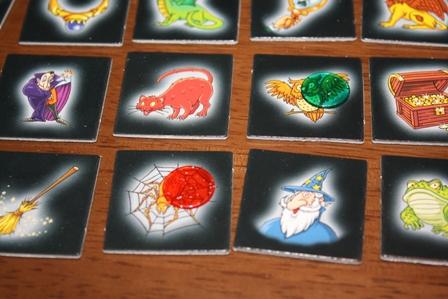 いろんな絵のタイルが24枚。これと、同じ絵の丸いタイルが同じく24枚。