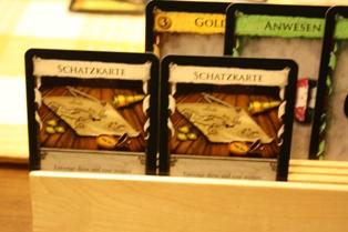 次のターン、目論見どおりもう1枚の「宝の地図」が来た! 停泊所に伏せておいたのと合わせて、これで2枚そろった!