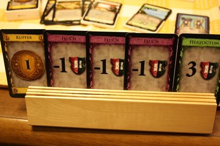 財宝カード廃棄させられる・・・まあ銅貨だからイイケド。。 「海の妖婆」(一番右のカード)で呪いを引かされるので 俺も対抗して同じことをやってみる。