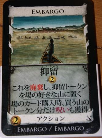 ================================ ■停泊所...価格2 +カード1枚 +1回アクションで 手札の1枚を脇に伏せておいて 次のターンのとき手札に戻せる ================================ 相棒は銅貨5枚だったみたいで「バザー」を購入
