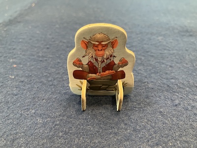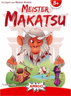-1から-3までの点数チップとカードデッキ6組、そして「マカツ」コマという構成です。各プレイヤー、好きなデッキを1つ選びます。 デッキの構成は同じで、3スートでそれぞれ1から8が1枚ずつで全部で24枚です。